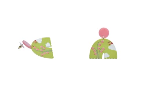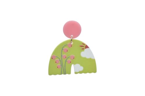 Generic - Acrylic Floral Arch Dangle Earrings for Women - Lime Green Pink