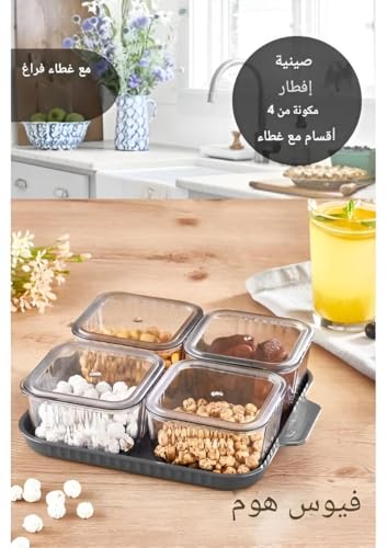 Generic - Acrylic Food Serving Set - Elegant 5-piece Breakfast Presentation Kit with Bowls and Turkish-Style Serving Tray (20cm)