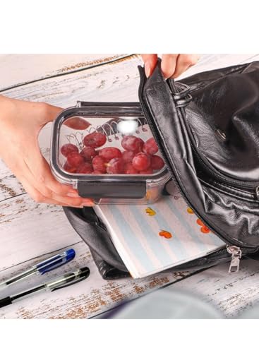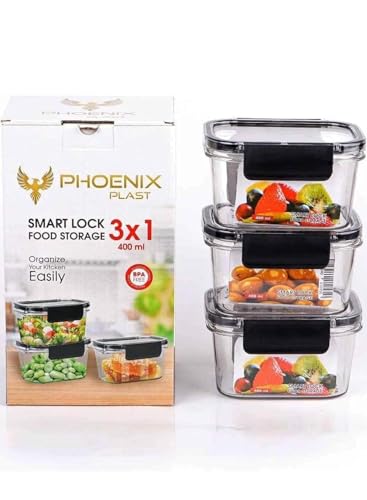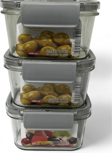 generic - طقم علب طعام اكريليك للثلاجة من 3 قطع مع قفل محكم وجوانب سيليكون شفافة - 3 × 400 مل، رمادي