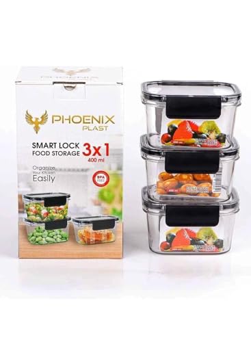 generic - Acrylic Fridge Food Container Set Of 3 Pieces With Airtight Lock And Clear Silicone Sides - 3 x 400 ml Multicolour