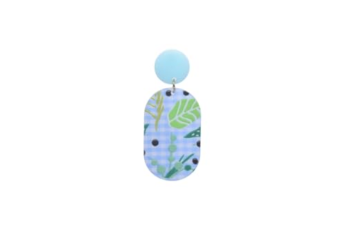 Generic - اقراط متدلية من الاكريليك بتصميم مربعات صغيرة ونباتات للنساء - ازرق فاتح