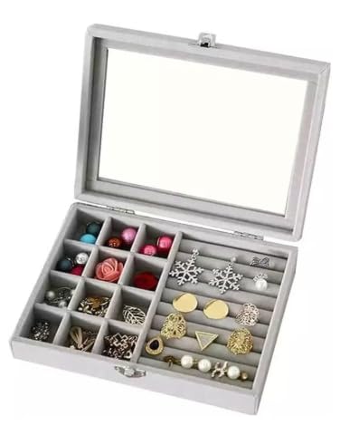 Generic - Acrylic Jewelry Boxes & Organizers, Clear Jewelry Box, Stackable Velvet Earring Organizer Tray for Ring,Bracelet,Earring Organizer - Grey