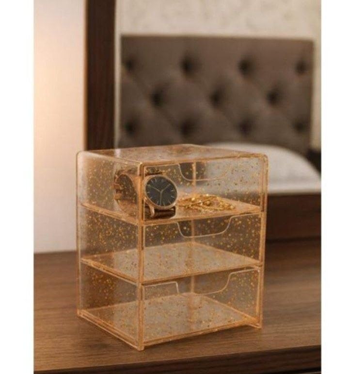 Generic - صندوق منظم مجوهرات من الاكريليك، 3 ادراج، تخزين شفاف