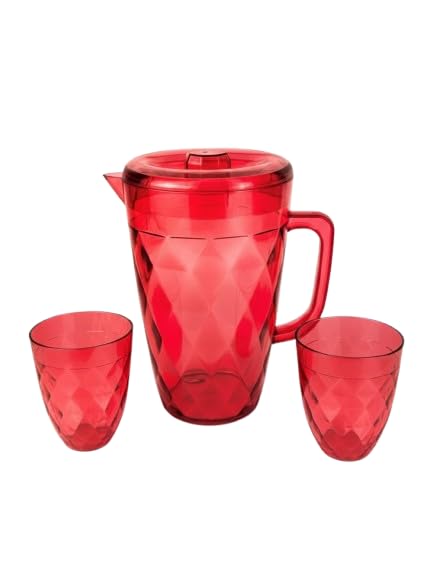 Generic - دورق وشفشق أكريليك سعة 2 لتر مع 2 كوب، تصميم عصري وجودة عالية. مصنوع من خامة أكريليك قوية مقاومة للكسر، مثالي لتقديم المياه، العصائر، والمشروبات في رمضان (احمر)