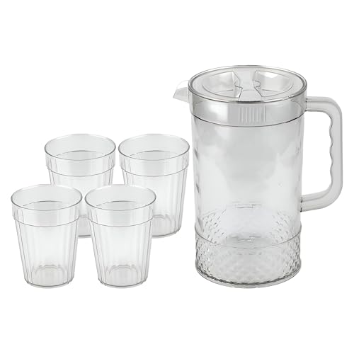 - The set includes a durable, shatterproof acrylic pitcher with a secure lid and a sturdy handle, designed for ease of pouring and daily use. Its robust construction ensures longevity, making it suitable for home use, outdoor parties, picnics, and barbecues.
