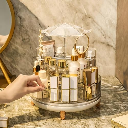 Generic - Acrylic Makeup Case - Functional vanity organizer with a unique umbrella design, providing a 360-degree rotating feature for easy selection and storage of various beauty items and tools.