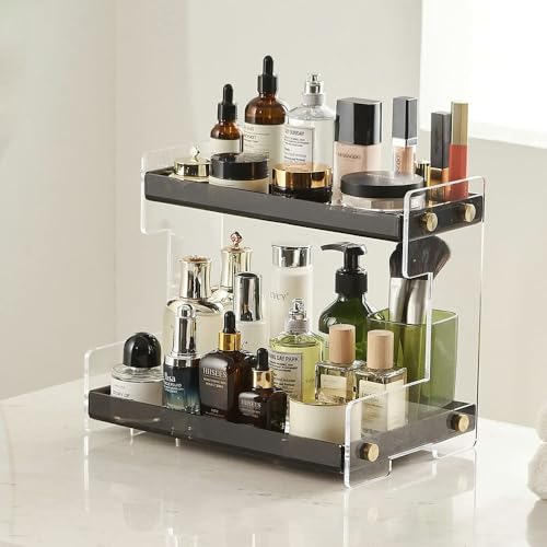 - High-Quality Acrylic 2-Tier Organizer – Premium clear acrylic design with strong side panels provides maximum visibility and easy access to all your makeup, skincare, and beauty products.