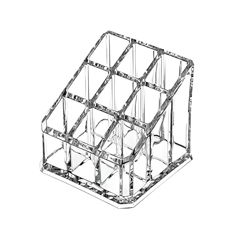 - Featuring nine distinct sections in perfect sizes of 3.5" x 3.5" x 2.6" this elegant acrylic organizer offers an elegant solution to store lipstick, mascara, eyeliner, cotton swabs, makeup sponges and more, while keeping a clean and mess-free look on your beauty table or bathtub.