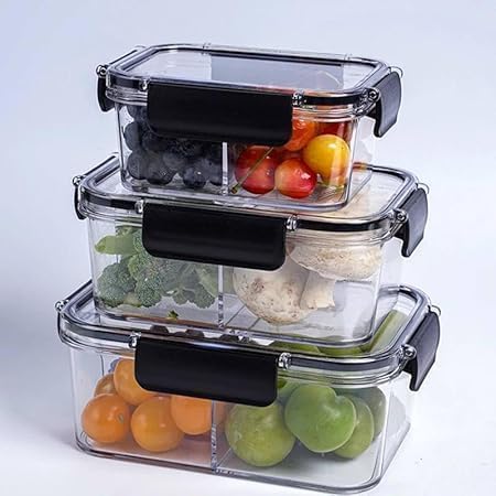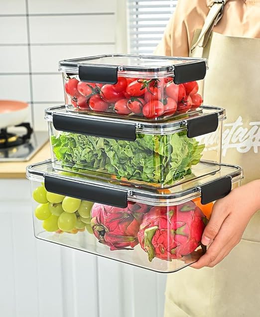 Generic - طقم منظمات ثلاجة وميكروويف أكريليك 3 قطع بمقاسات متنوعة، علب حفظ طعام شفافة ومحكمة الغلق لتنظيم وتجميل مطبخك k
