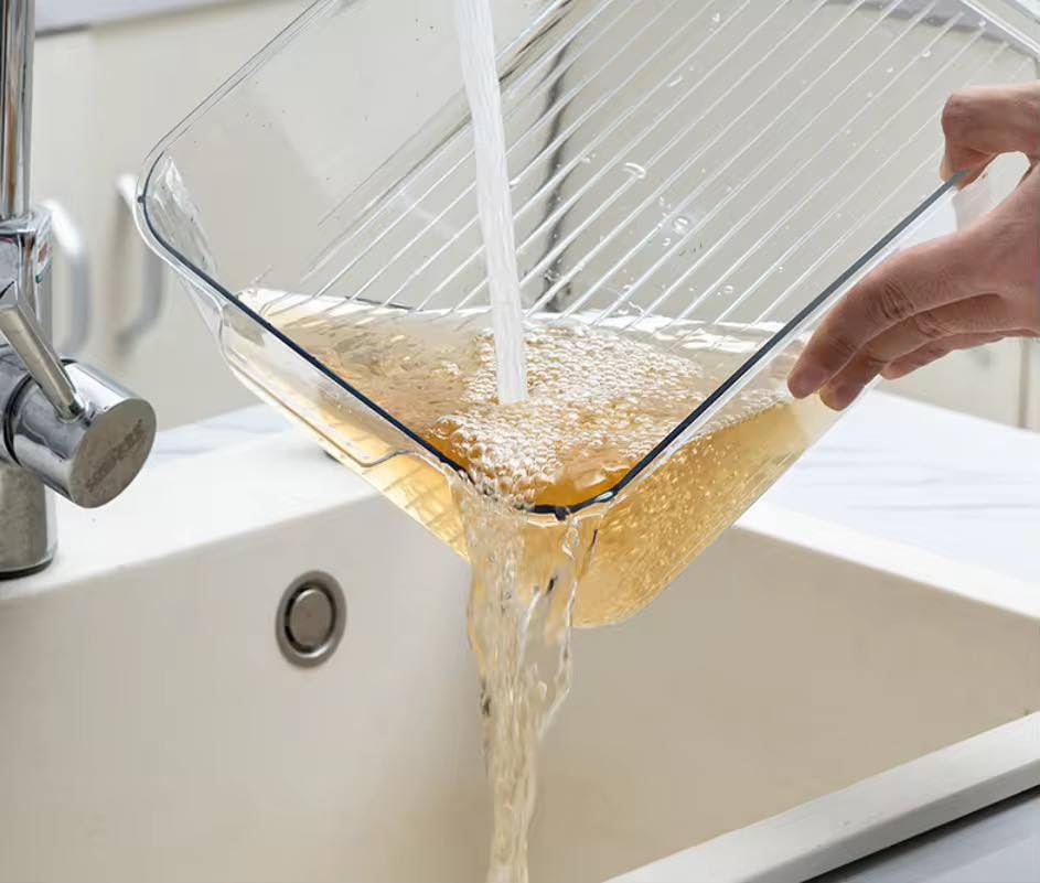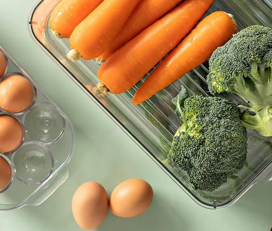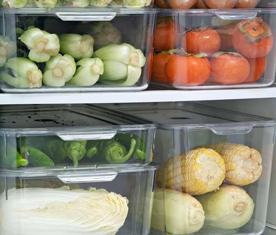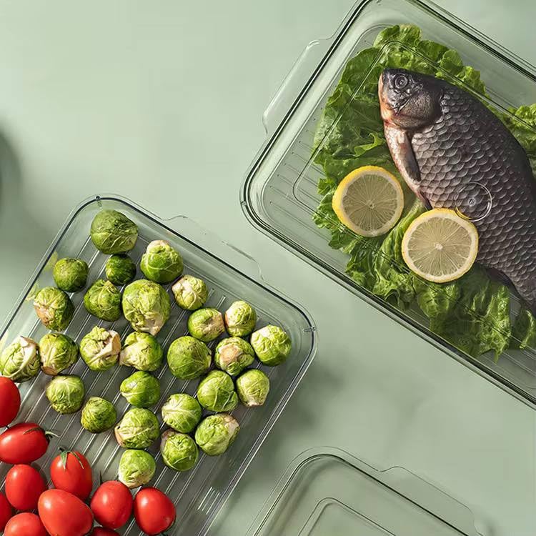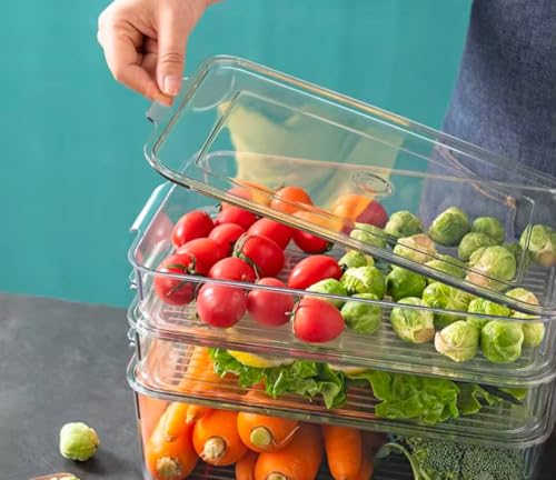 - Made of high-quality clear acrylic that is healthy to use. Fitted lid + bottom hole to filter out excess liquid. Perfect for keeping vegetables, fruit, cheese and food in the refrigerator. Microwave (up to 60°C) and dishwasher safe Large Size (12x21cm, depth 5cm) Provides Spacious Storage Space Functional design makes it easy to organize and see inside the fridge