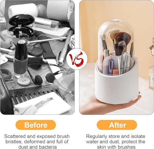 - تنظيم ذكي يوفر الوقت والمجهود يوميًا: يساعدكِ منظم فرش الميكب الدوار على ترتيب جميع أدواتكِ في مكان واحد واضح وسهل الوصول، مما يقلل الفوضى ويجعل روتين المكياج أسرع وأكثر انسيابية، خاصة في الصباح أو قبل المناسبات المهمة، لتبدئي يومكِ بثقة وراحة.