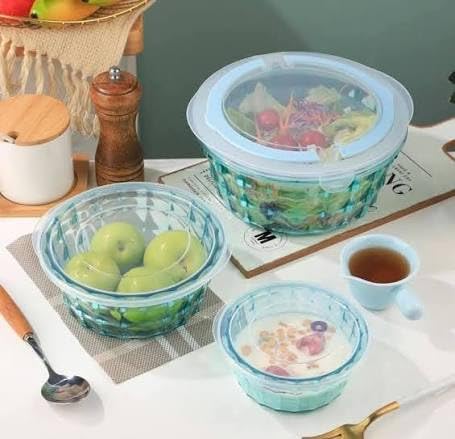 Generic - Acrylic Round Food Boxes, Set of 3 Different Sizes (0.3-0.6-1.2 L) – BPA Free Material For Healthy Food Storage and Meal Preparation, For Office, Home, Gym, Fridge, and more. (Green)