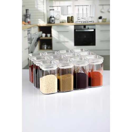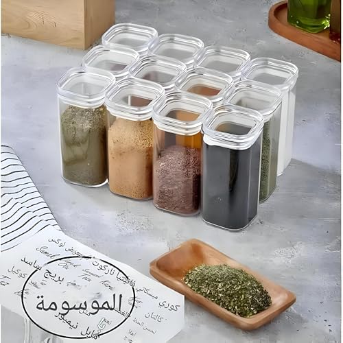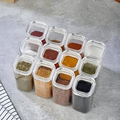 Generic - حاوية توابل اكريليك - مجموعة حاويات توابل اكريليك متينة وانيقة، تتضمن 12 برطمان بسعة 250 مل لكل قطعة، مصممة باغلاق سيليكون لضمان بقاء التوابل طازجة ولذيذة لفترة أطول