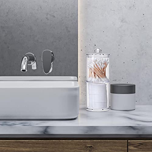 - ?Simple to use: Each acrylic holder apothecary jars have a removable acrylic lid and a wide mouth to make accessing bathroom necessities and accessories simple, easy to set the things perfectly in the dispenser, and easy to get them out.