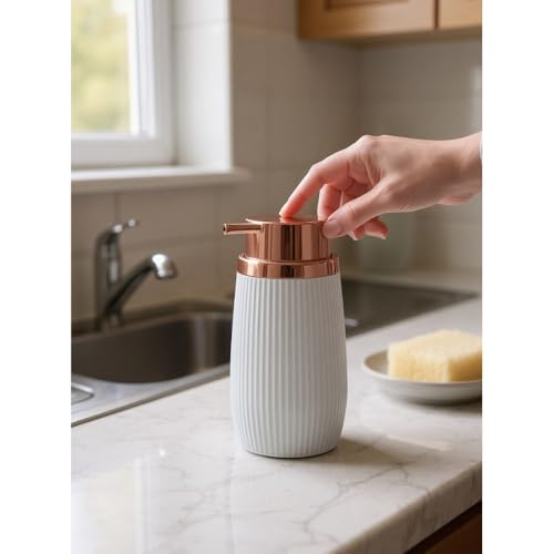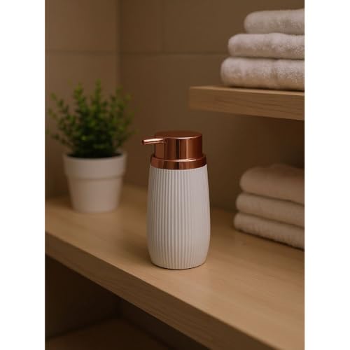 Generic - موزع صابون مخطط من الأكريليك، موزع صابون اليد او اللوشن قابل لإعادة الملء 300 مل مع رأس مضخة برونزي بتصميم أنيق للحمام والمطبخ - عرض 8 × ارتفاع 15.8 سم - (لون أبيض)