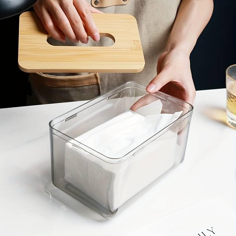 Generic - "Acrylic Tissue Box with Bamboo Lid for Desk Tissue Dispenser"