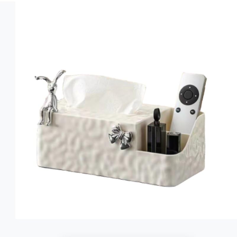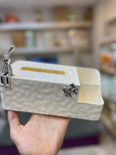 Generic - Acrylic Tissue Box with Storage Compartment – Transparent Bunny Design, Multifunctional Organizer for Tissues, Makeup, Desk Accessories & Small Items (White (one piece))