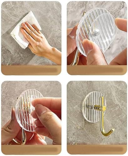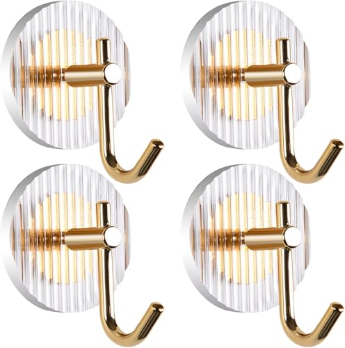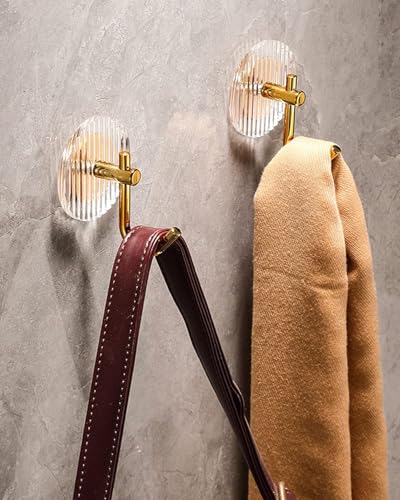 Generic - Acrylic Wall Hook Set – 4 Transparent Adhesive Hooks with Gold Hangers – Strong Double-Sided Tape for Keys, Towels & Bags (Transparent * gold (4 pieces))