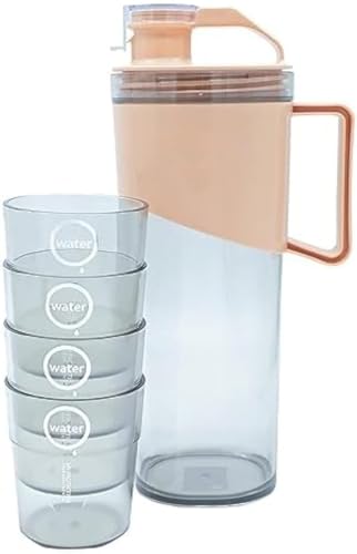 - The set comes with a 5-liter water jump and four cups making it suitable for tidy water or juice both during daily indoor use or receiving guests.
