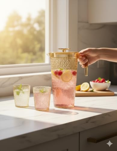- COMPLETE SERVING SET: Includes 1 glass pitcher and 4 matching glass cups, providing a complete beverage serving solution for family meals, gatherings, and entertaining guests