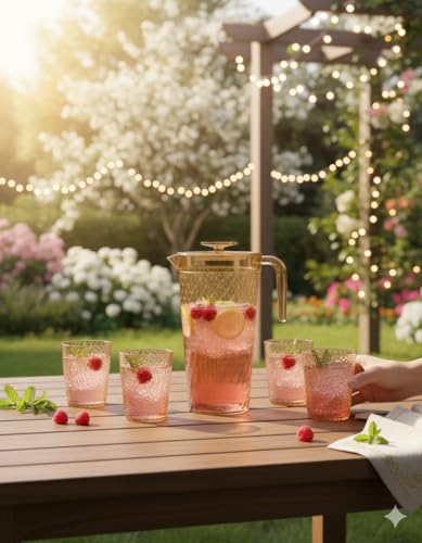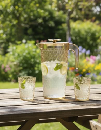 Generic - Acrylic Water Pitcher with 4 Cups Set, Durable, Lightweight, Easy-Pour Spout, Reusable, Complete Beverage Serving Set (Clear with Gold Tint)