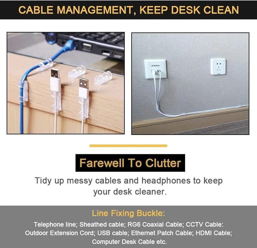 Generic - مع منظم الأسلاك الأكريليك لن تعاني بعد اليوم من منظر الأسلاك المتشابكة، فهو مصنوع من خامة متينة شفافة، سهل التركيب والإزالة، ويمنحك ديكورًا أكثر ترتيبًا وأناقة. (باكيت 20 قطعه)