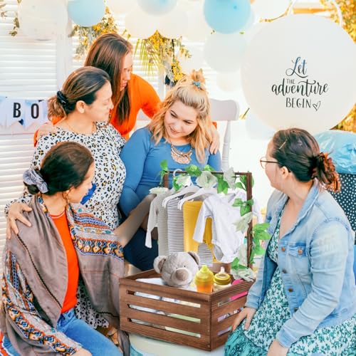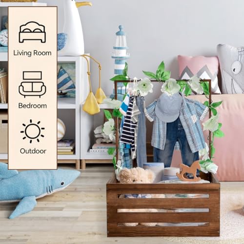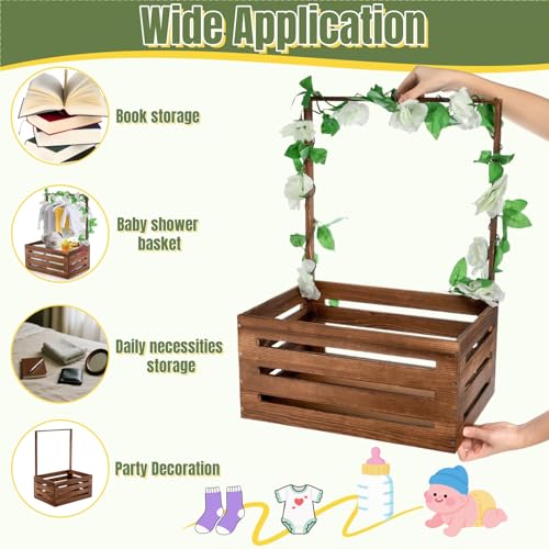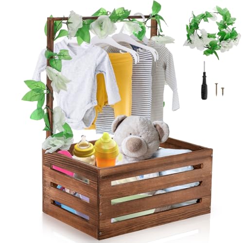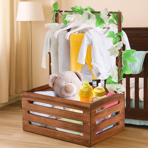 Acshio - Baby Shower Crate Closet, Wooden Vintage Storage Crate with Handle Artifical Garland, Large Welcome Gift Hamper Basket for Pregnancy Gifts New Parents