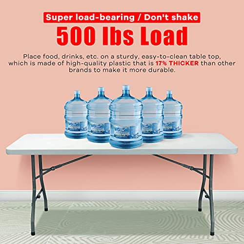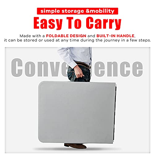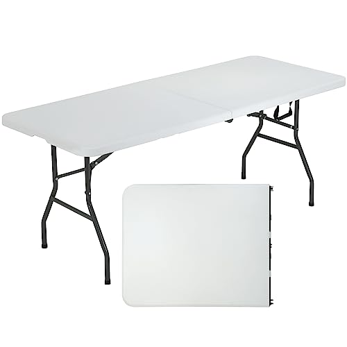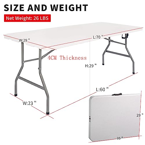 Actask - طاولة قابلة للطي من اكتاسك 6 قدم (سمك 4 سم) طاولة محمولة وصغيرة الحجم للنزهات والتخييم والحفلات والحديقة - طاولة محمولة سهلة النقل مع مقبض حمل (ابيض)، بولي إيثيلين عالي الكثافة
