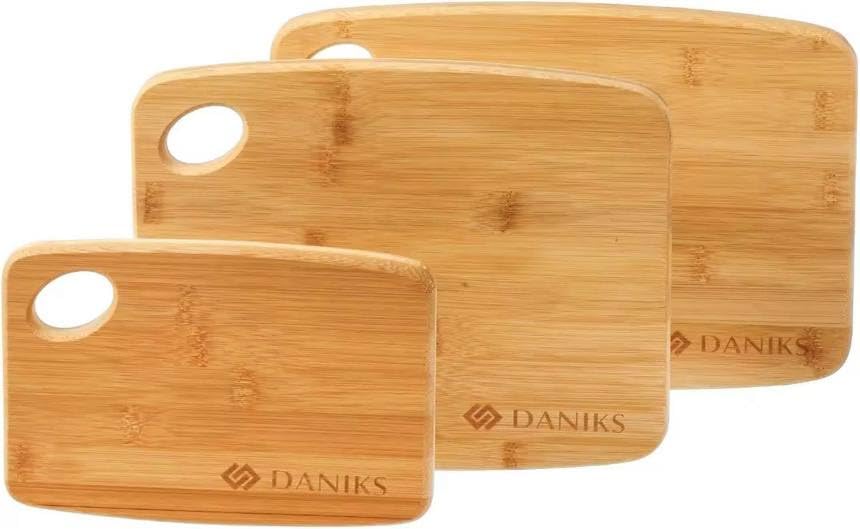 - Complete Bamboo Cutting Board Set of 3 – Three Sizes for Every Task Includes a small bamboo cutting board, medium bamboo cutting board, and large bamboo cutting board — perfect for chopping vegetables, slicing bread, preparing meats, or serving cheese platters. Durable and stylish for everyday kitchen use.