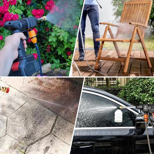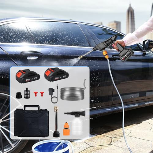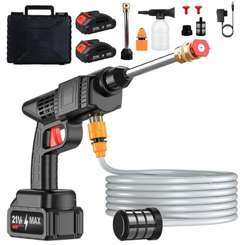 Acxilexy - آلة غسيل بالضغط العالي محمولة مع بطاريتين وخرطوم بطول 5 متر، مسدس غسيل لاسلكي صغير قابل لإعادة الشحن لتنظيف السيارات والأرضيات من اكسيليكسي