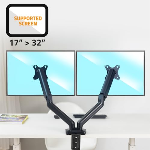 - DOUBLE SCREEN PC ARM: This VESA 75/100mm compatible monitor mount is designed to raise two standard or curved screens from 17" to 32". ERGOMOUNT DUAL allows you to continuously adjust the position of your monitors and enjoy a more ergonomic position to work.