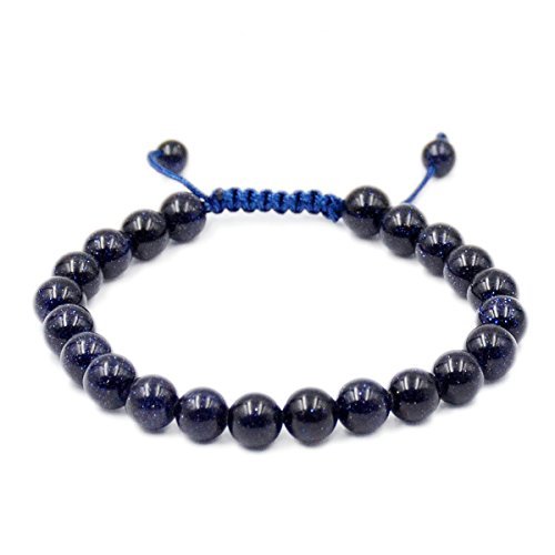 AD Beads - AD Beads Natural 8mm Gemstone Bracelets Healing Power Crystal Macrame Adjustable 7-9 Inch (Blue Sand)