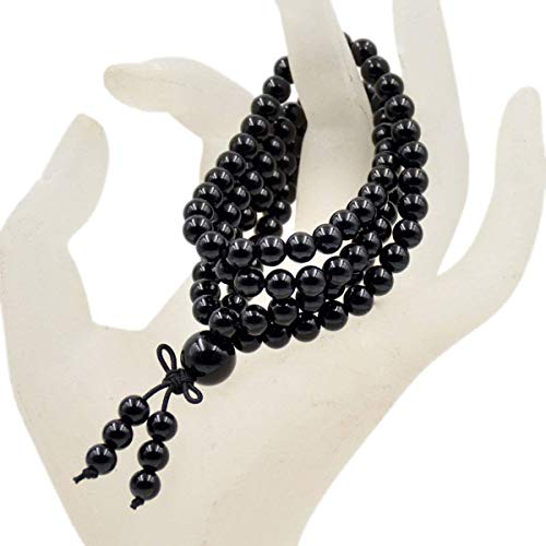 AD Beads - AD الخرز الأحجار الكريمة الطبيعية البوذية 108 مسبحة شفاء مالا بسط سوار قلادة 6 مللي متر عقيق أسود ، للبالغين من الجنسين