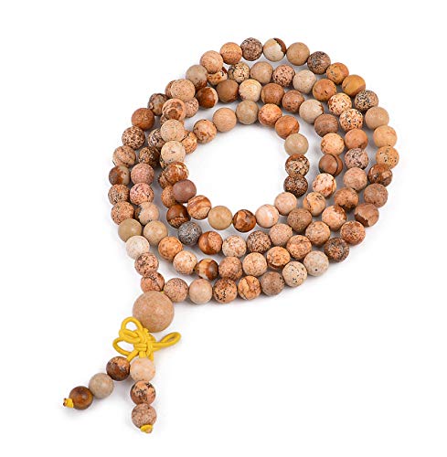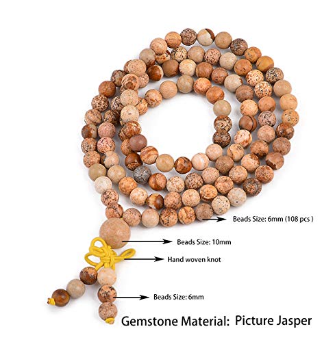AD Beads - AD Beads Natural Gemstones Buddhist 108 Prayer Healing Beads Mala Stretchy Bracelet Necklace 6mm (Picture Jasper)