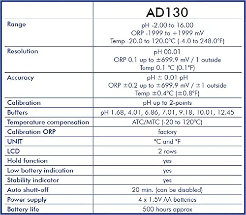 Other - AD130 Professional Multi-Parameter Splash-Proof pH-ORP-TEMP Portable Meter