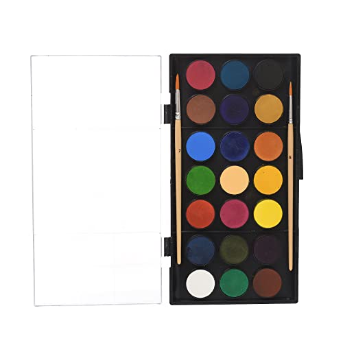 - تأتي مجموعة الطلاء المائية المحمولة هذه مع 21 لونًا من الألوان المائية الصلبة وفرش خشبية لا تتساقط الشعر