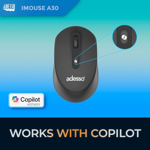 Adesso - Adesso iMouse A30 Wireless Mouse with AI Copilot Button 2.4GHz USB Dongle 1200 DPI Left and Right Hand Design (Black)