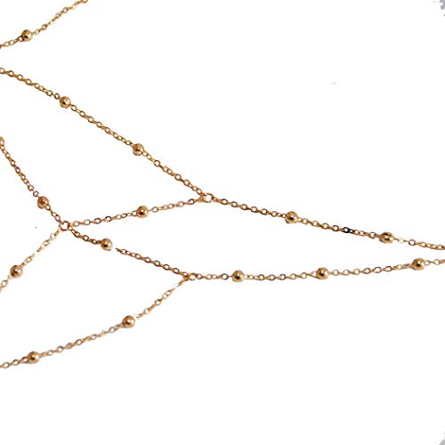 Adflyco - ادفلاكو سلسلة شاطئ متعددة الطبقات من الخرز الذهبي، سلسلة مجوهرات للجسم للنساء والبنات