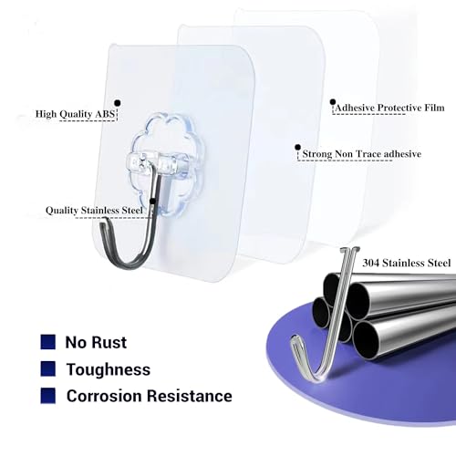 - Rustproof & Waterproof Adhesive Hooks: Made from high-quality stainless steel and durable PC material, these hooks are rustproof, waterproof, oilproof, and built to last. Perfect for use in the living room, kitchen, bathroom, shower, behind doors, or outdoors. Comes with 25 sticky hooks in one pack.