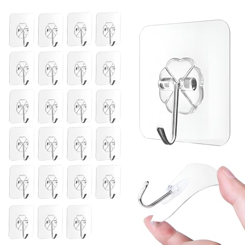Bluedotx - Adhesive Hooks for Hanging, Heavy-Duty Wall Hooks, Self-Adhesive Transparent Hooks, Waterproof Towel & Coat Hooks for Bathroom, Shower, Kitchen, Keys, Doors, Outdoor Use - 25 Pack