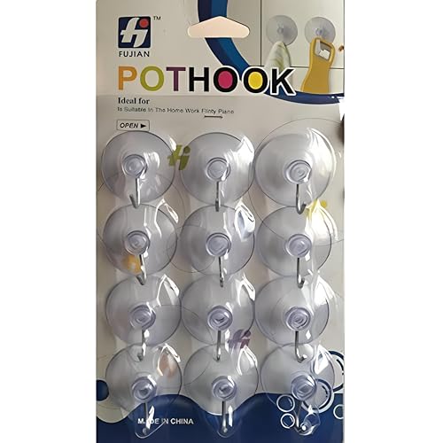 Generic - Adhesive Hooks - Transparent suction cup clothes hangers for ceramic, glass, and smooth surfaces; includes acrylic hooks; 12-piece pack; easy install; no drilling; bathroom and kitchen organization