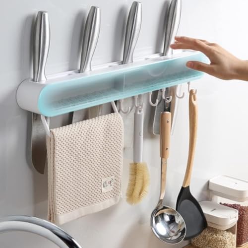 - Adhesive Knife Holder with 3 Slots for Knives Easy Cleaning Wall-Mounted Kitchen Knife Block Hooks for Utensils towels