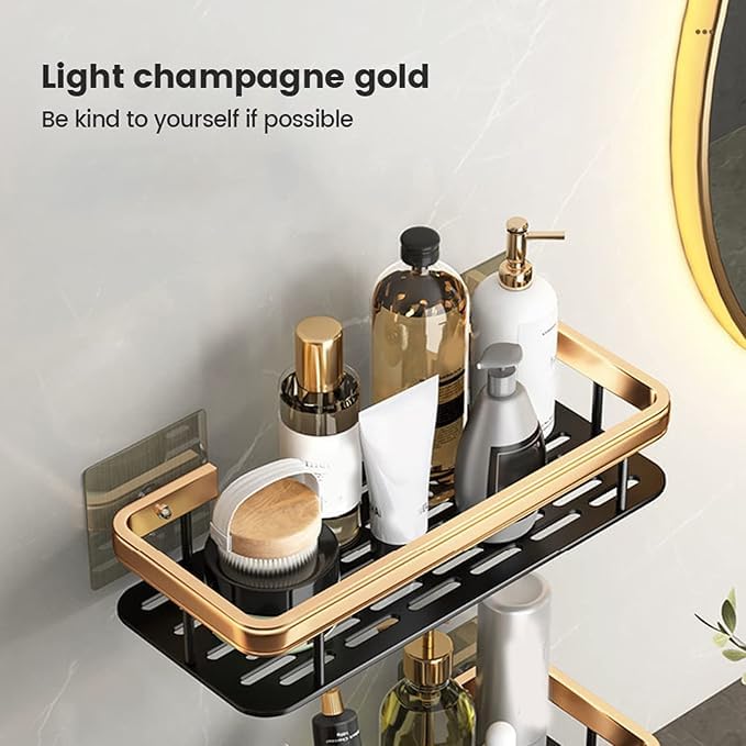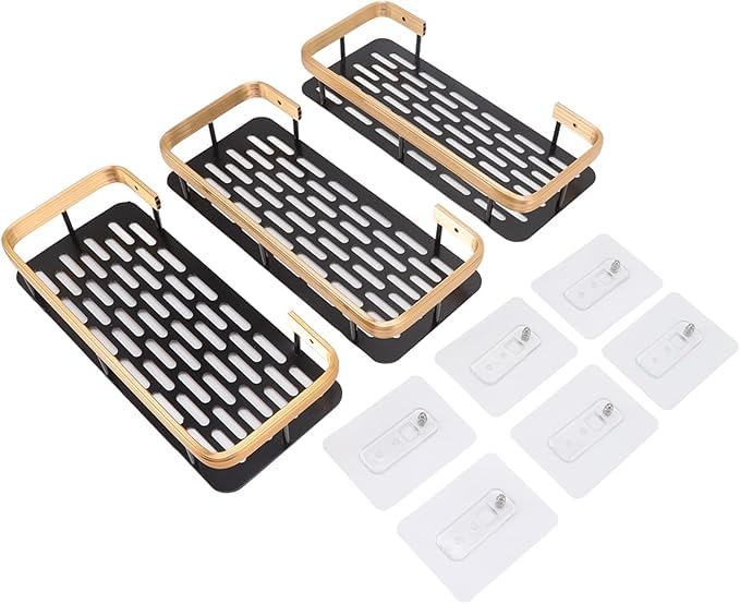 Generic - رف سلة استحمام لاصق مكون من 3 طبقات يثبت على الحائط بدون ثقب، رف منظم للحمام والشامبو (اسود ذهبي)