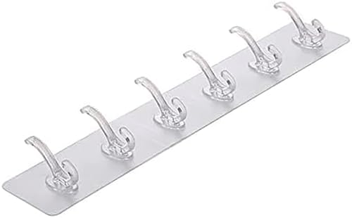 Wonka - مجموعة خطافات تعليق حائط لاصقة لتعليق الملابس، ملصق سحري متين ذاتي اللصق، أدوات تنظيم الأبواب للمنزل والمطبخ والحمام وغرفة النوم والعناصر الملحقة (شفاف - 6 خطافات تعليق) (لون أبيض شفاف)