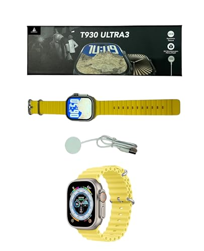 ADHOMAX - ADHOMAX New 2025 T930 Ultra3 smart watch Elegant Design 49MM, NFC, infinite HD display, Fitness Tracker, Heart Rate, Calls, Wireless Charging, for IOS, android for men and women (Yellow)