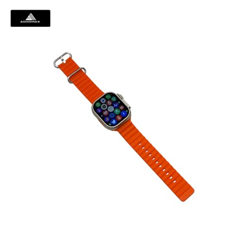 ADHOMAX - ساعة ذكية T2000 الترا 2 أنيقة HD 49 ملم بشاشة وتقنية ان اف سي، مكالمات بلوتوث، شحن لاسلكي، شاشة تعمل باللمس، متتبع اللياقة البدنية، متوافقة مع IOS وأندرويد، للرجال والنساء من ادهوماكس، برتقالي