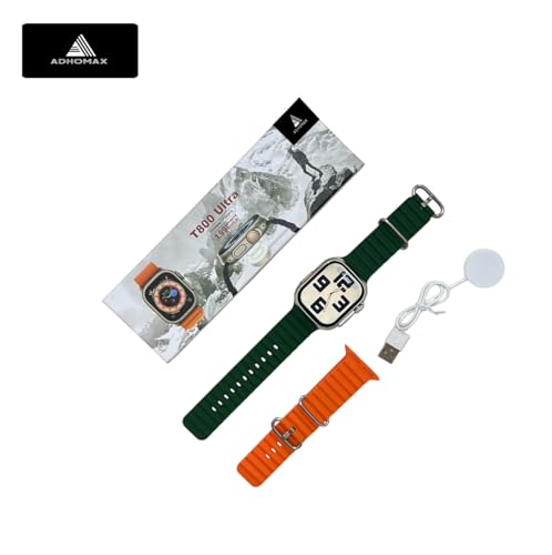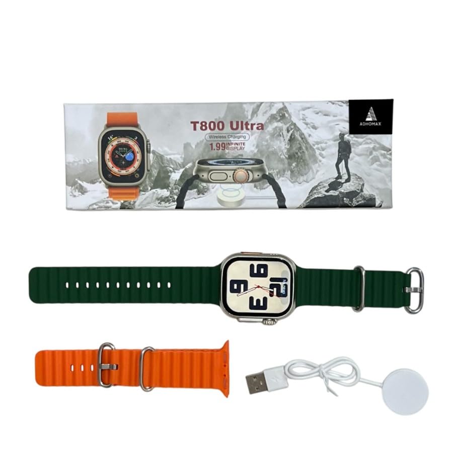 ADHOMAX - ADHOMAX New T800 Ultra Smart Watch Elegant Design 1.99" HD Display, Fitness Tracker, Heart Rate, Oxygen Monitor, Calls, Wireless Charging, Works With IOS, android for men, women (1, Orange+OilGreen)