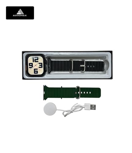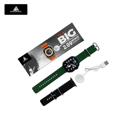 ADHOMAX - ADHOMAX New T900 Ultra Smart Watch Elegant Design 2.09" HD Display, NFC, Fitness Tracker, Heart Rate, Oxygen Monitor, Calls, Wireless Charging | IOS and android for men, women (1, Black+OilGreen)