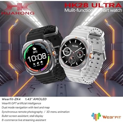ADHOMAX - ADHOMAX Smart Watch HK28 Ultra 46MM Amoled 3D Display, Elegant Design, AI GPT, Maps, NFC, Voice Assistant, Fitness Tracker, Calls, Wireless Charging, Heart Rate, Oxygen Monitor, Wearfitpro (Black)