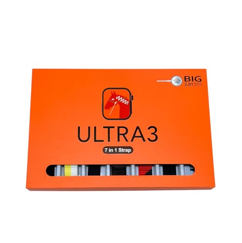 - 4. Wireless Charging Convenience: Say goodbye to messy cables! The Ultra3 supports wireless charging, making it easy to power up your watch with minimal effort. Simply place it on the charging pad, and you’re good to go. 5. 7 Interchangeable Straps: Customize your look with 7 interchangeable straps included in the box. Whether you prefer a sporty, casual, or formal style, the Ultra3 has a strap to match your mood and outfit.